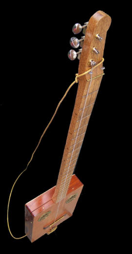 cigar box, diddly bow, or electric guitars, ukulele, harmonica, or keyboards,
