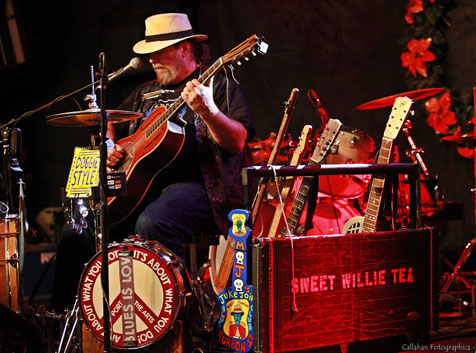 either solo as a “one-man-band” or as "Sweet Willie and the Tea Bones", his