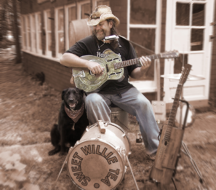 While he still performs with "The Tea Bones", Sweet Willie can most often be found performing traditional blues and original songs as a "one-man-band". Willie's shows feature historical facts about the instruments including turn-of-the-century cigar box guitars, dobros, diddley bows, a variety of other acoustic guitars, plus harmonica and, of course, his unique self-accompanying percussion.